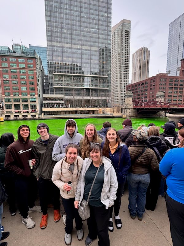 The last adventure (Day 7) Friday morning we packed up and had our last mass with the sisters and the bishop. We then hopped on a bus to see the famous St. Patrick’s day tradition where they dye the Chicago river green! There were so many people and the river actually turned a bright green! After navigating some city traffic(with mini hacky sac at the bus stop) We had one last meal with the sisters and played another short game of hacky sac before our emotional and final goodbye. We’re on the last flight home as of now. The Lord has taught us all to trust him this week by frequently giving us perfectly timed arrivals and departures whether it be busses, trains, or planes. His hand has truly been guiding this trip despite the delays, challenges, and incredulities. Thank you for reading about our adventures! Until next time.