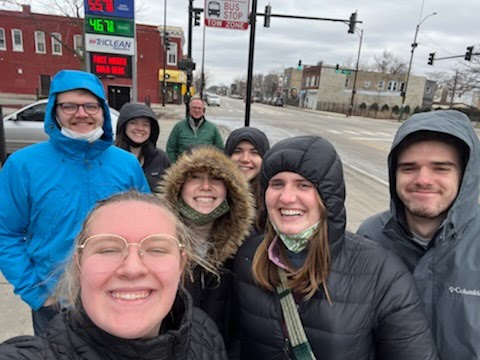 March 7, 2022: A day of preparation and mercy. We woke up in time for 6:30am mass in our little chapel in the retreat center with Bishop Bob, Fr. John, and Fr. Bart. Bishop Bob talked about how the reading, Matthew 25, is one of his favorites. In this passage it speaks about serving others in tangible ways and Jesus says “Amen, I say to you, whatever you did for one of these least brothers of mine, you did for me” (Matthew 25:31-46). This was the perfect gospel passage to start off our week of serving our poor neighbors on the streets of Chicago.