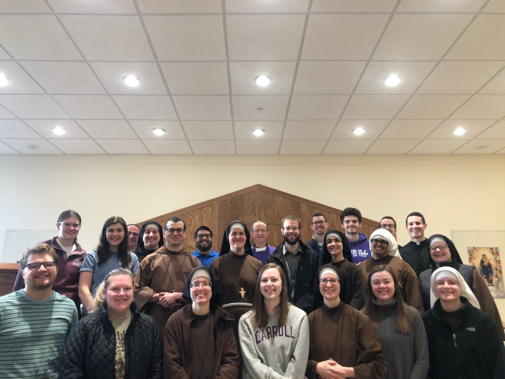 We had a great week and especially loved getting to know the Franciscans of the Eucharist: Bishop Bob, Sister Kate, Sister Jess, Sister Maci, Sister Laura, Sister Alicia, Sister Emily, Sister Stephanie, and Brother Matt. As well as the seminarians from the Congregation of Holy Cross: Alex, Matt, John, Brother Jimmy, Chris, and Father John. (All pictured in the photo with today)