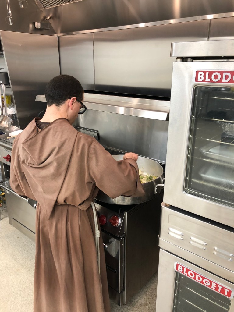 Following work we were able to enjoy a nourishing lunch one of the groups crafted with sister Stephanie, consisting of pasta, lettuce, and fruit.