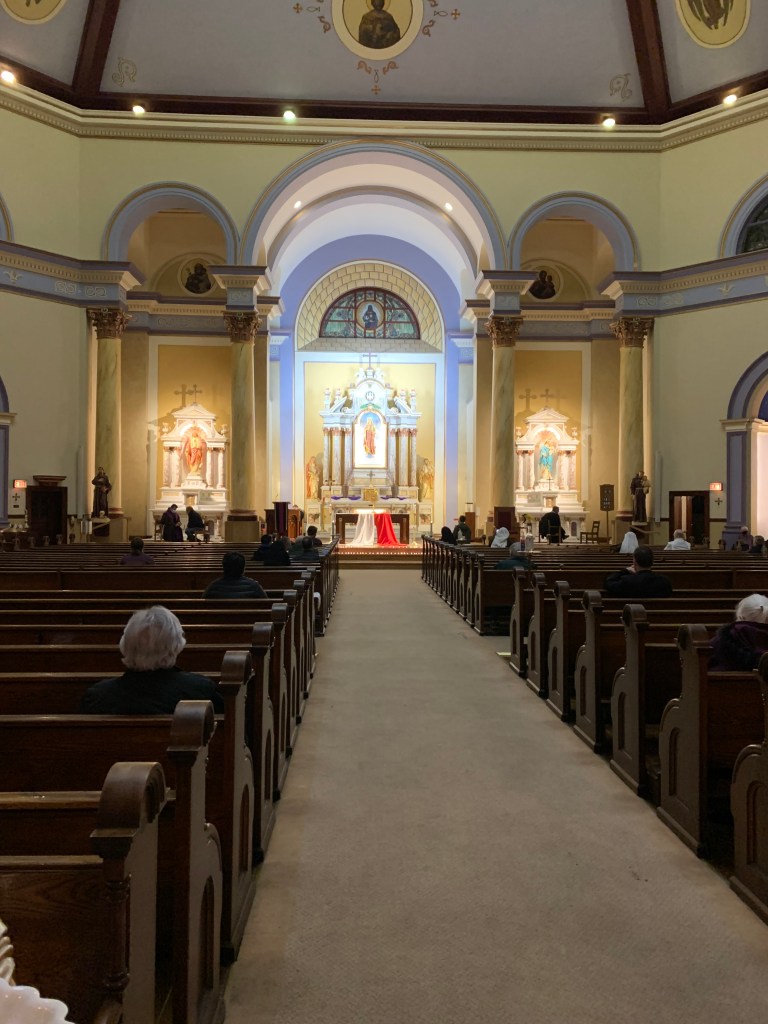 Then tonight, we went to St. Barbra’s church for another Night of Mercy. This is a primarily Chinese Catholic community so we started with Chinese food for dinner and then went to our assigned positions for the evening. The Franciscan’s goal of these evenings is to bring awareness and exposure to the Eucharist to as many people as possible. People to walk around the neighborhood to invite, greet, hand out candles for people to light for an intention, organize confession lines, and hand out hot coco. It was a beautiful church and evening. We are really enjoying seeing many different churches and communities.