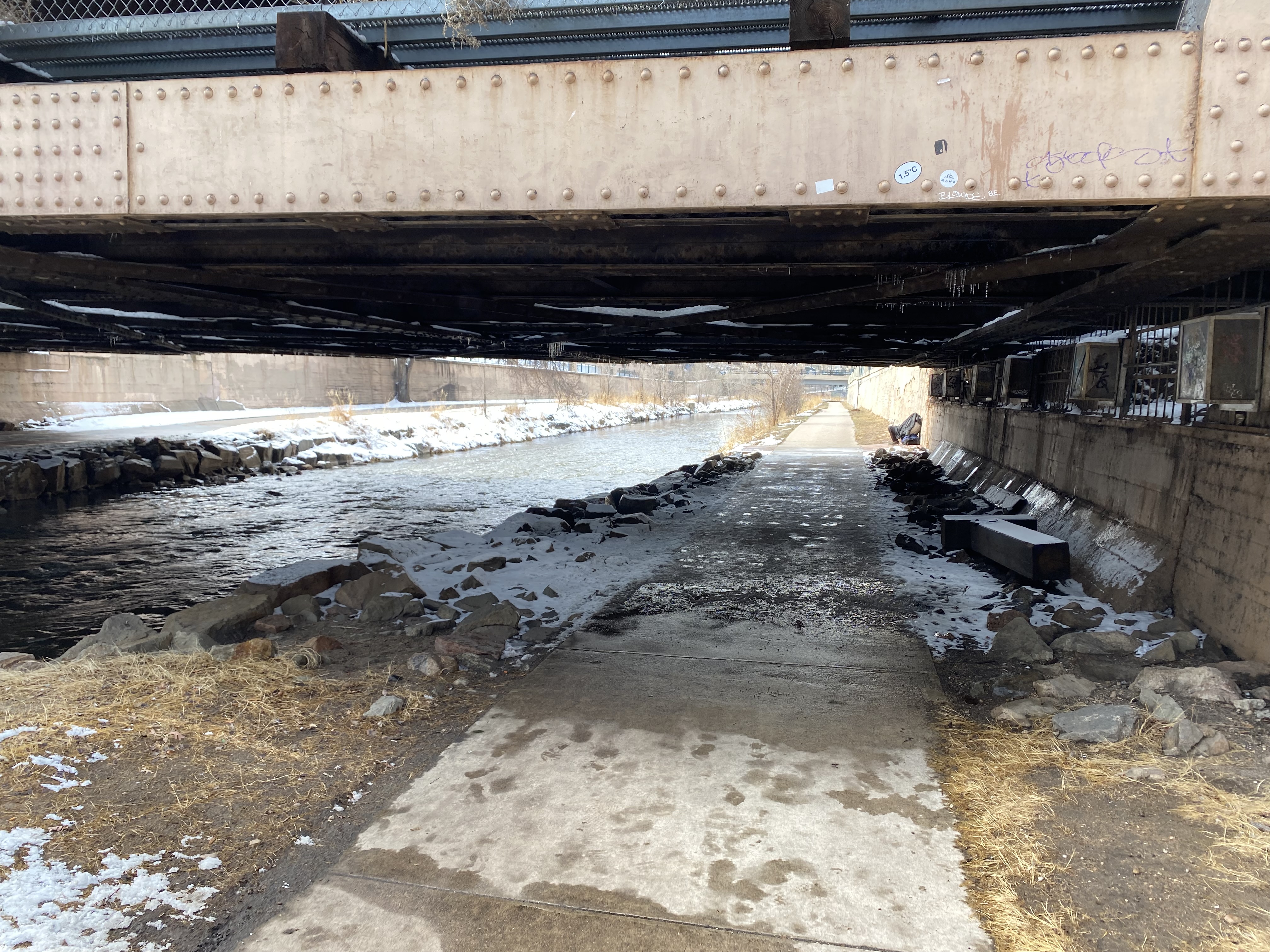 Heading to the streets, I tried not to have any expectations other than it being tough to see such harsh conditions up close: Living on the streets, in early March, in Denver Colorado. We started out just after 9 am by walking under a bridge surrounded by driveways, the 20th St. route. Though several tents were up, it was presumably a little early as only two answered our calls; “Hello there, do you need any gloves or water?” etc.