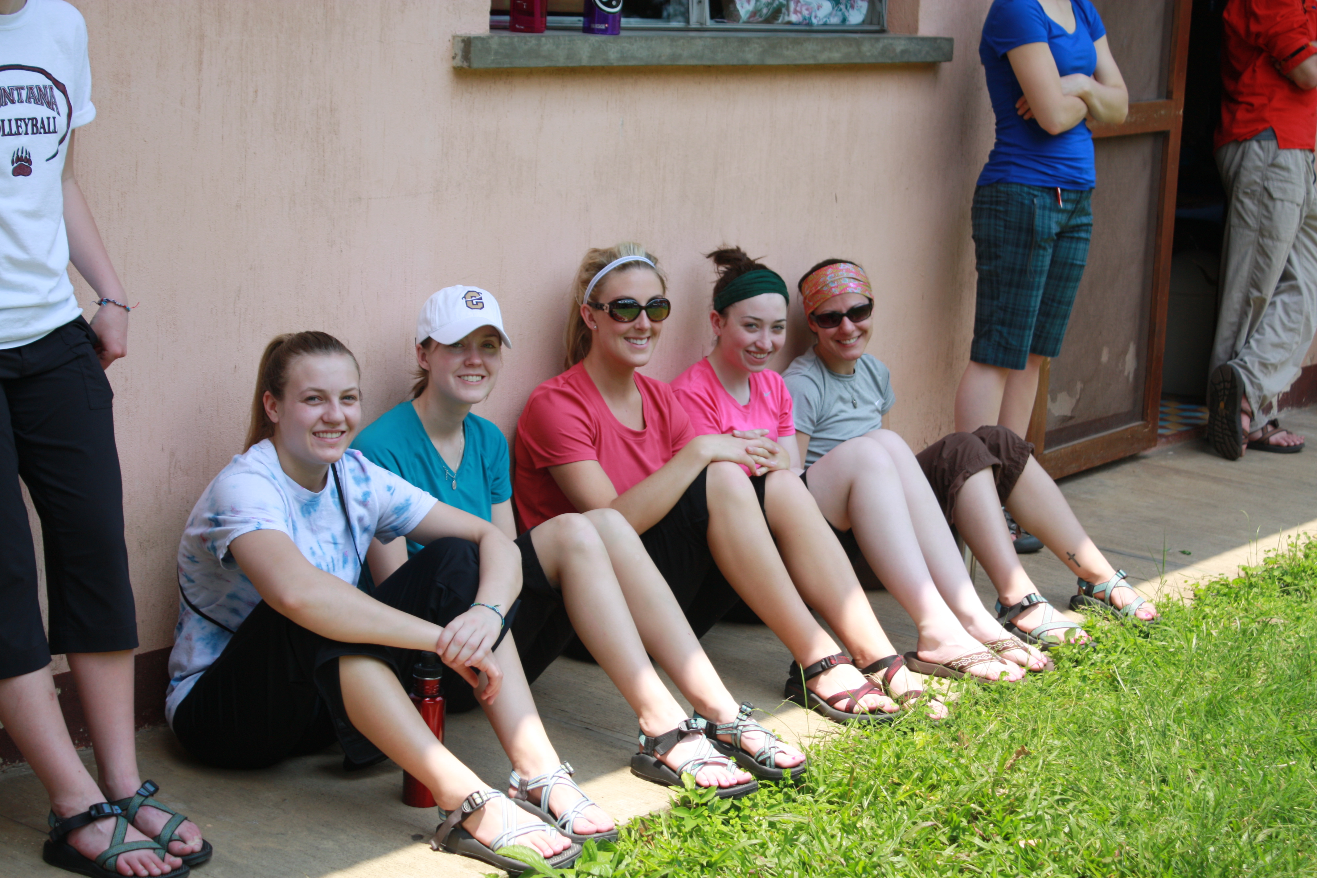 I began making friendship bracelets a couple days before I left the States. I envisioned tying them to little children’s wrists and making new “friends”…as the name entails. I prepared many bracelets and many more pre-tied strings to be made into bracelets on the long plane ride here. In the airport many of the other girls asked if they could make one…to myself I said, “HECK YA YOU CAN…make seven!!!!! There is way more than just a few adorable children in Guatemala…”. Before we even made it to LA, all my pre-tied bracelets had been made and the girls were asking if I brought more string (which I totally did…). Today that “hard” work on our part totally paid off….